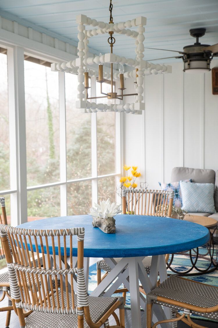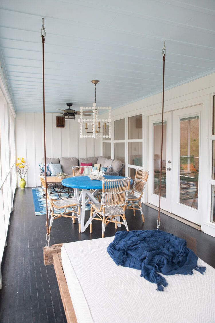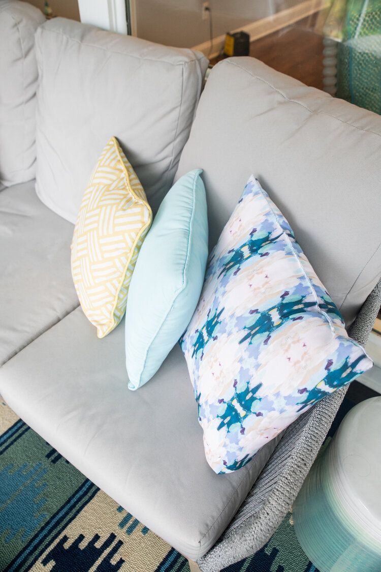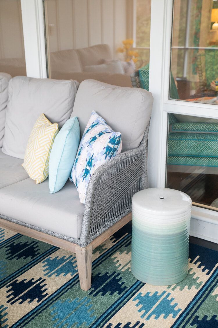 We had a previous opportunity to help this fun, young family add some color to their main spaces in their home, so when they asked us to update their porch we excitedly said yes! We utilized cool colors and a beachy vibe to transform this porch into their very own backyard oasis. They can now get away and relax, just by stepping out the door.