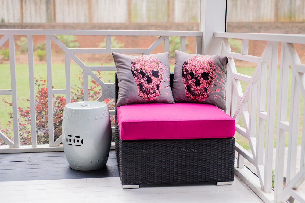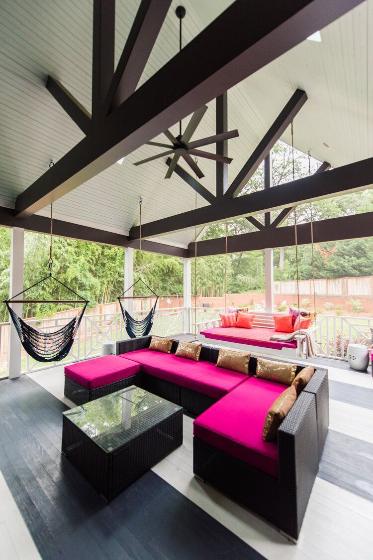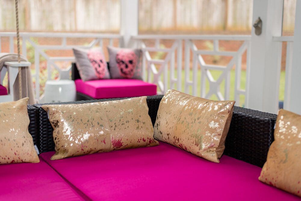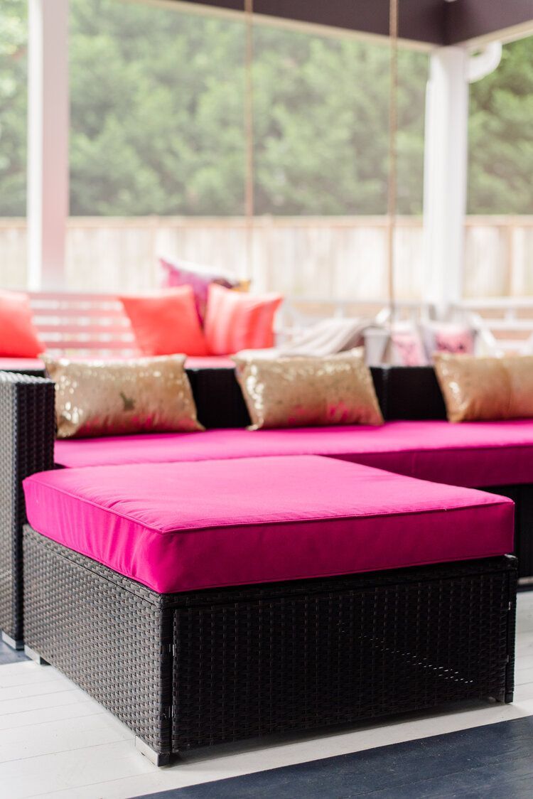 A little bit of rocker chic went a long way with this porch! We enjoyed this project and utilizing so many vibrant colors and patterns. This couple has an energetic style and their porch certainly showed that! Outdoor gatherings have never looked this good.