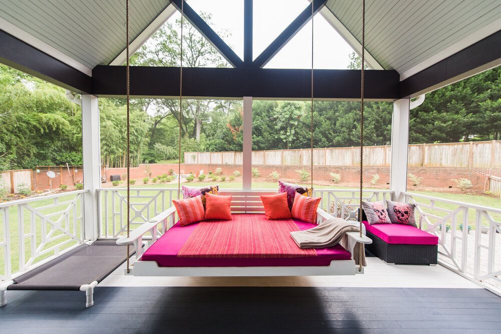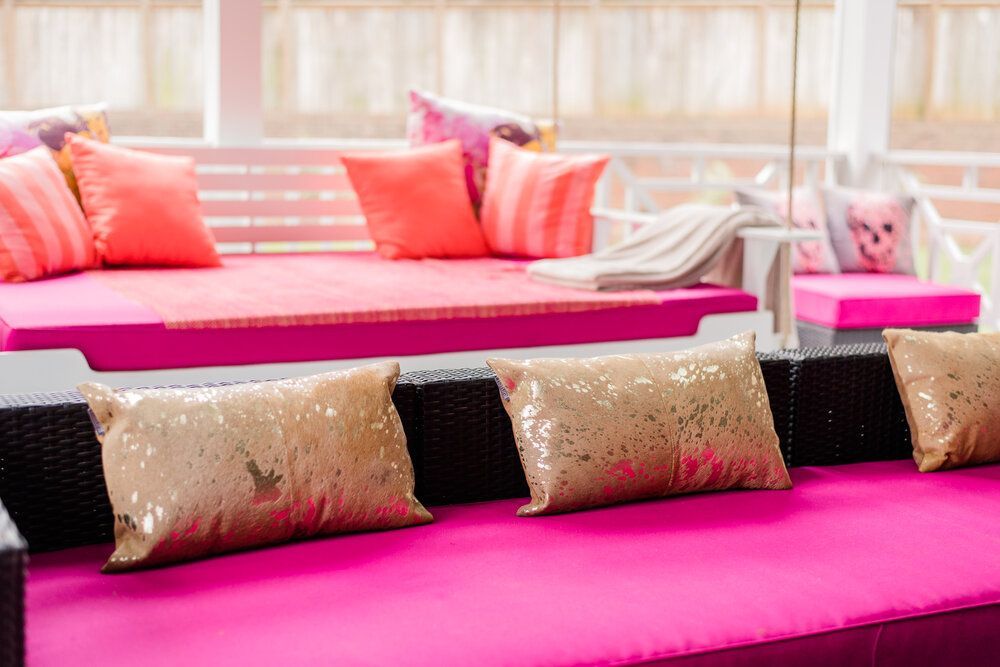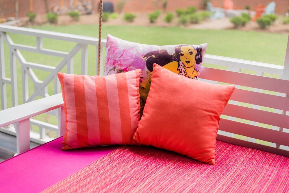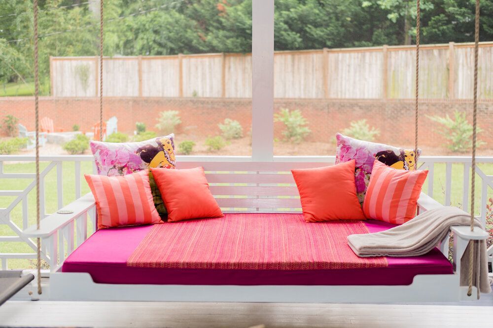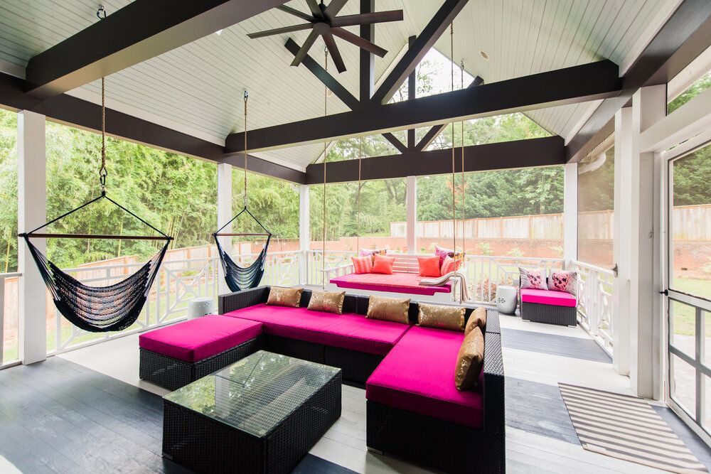 A little bit of rocker chic went a long way with this porch! We enjoyed this project and utilizing so many vibrant colors and patterns. This couple has an energetic style and their porch certainly showed that! Outdoor gatherings have never looked this good.