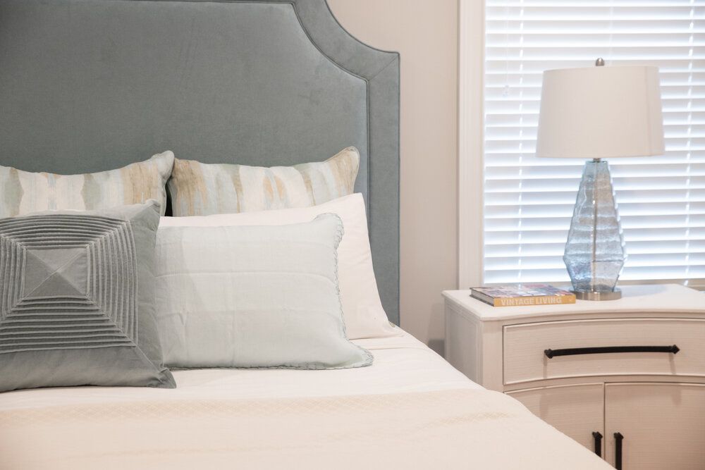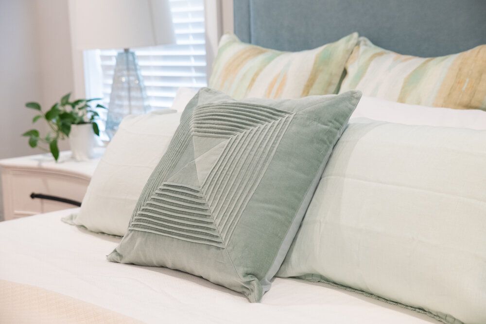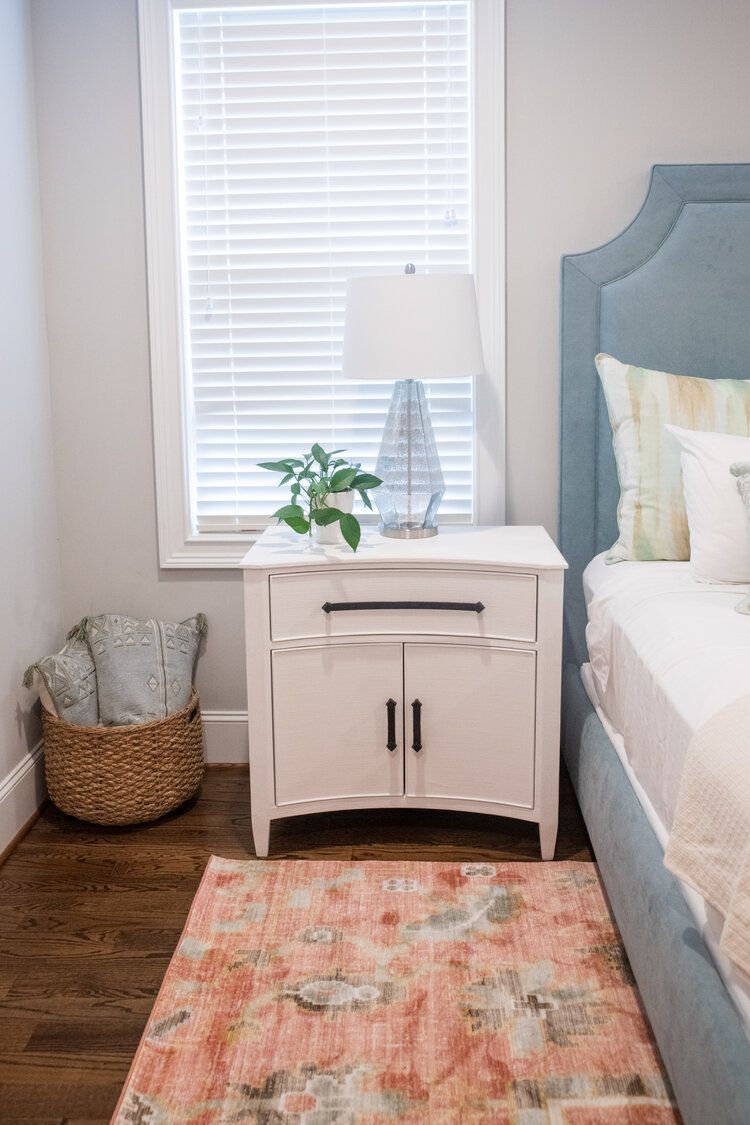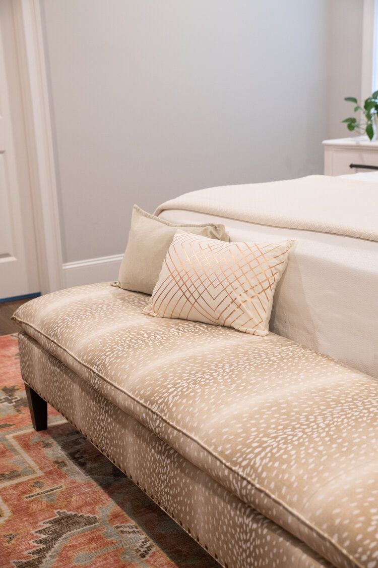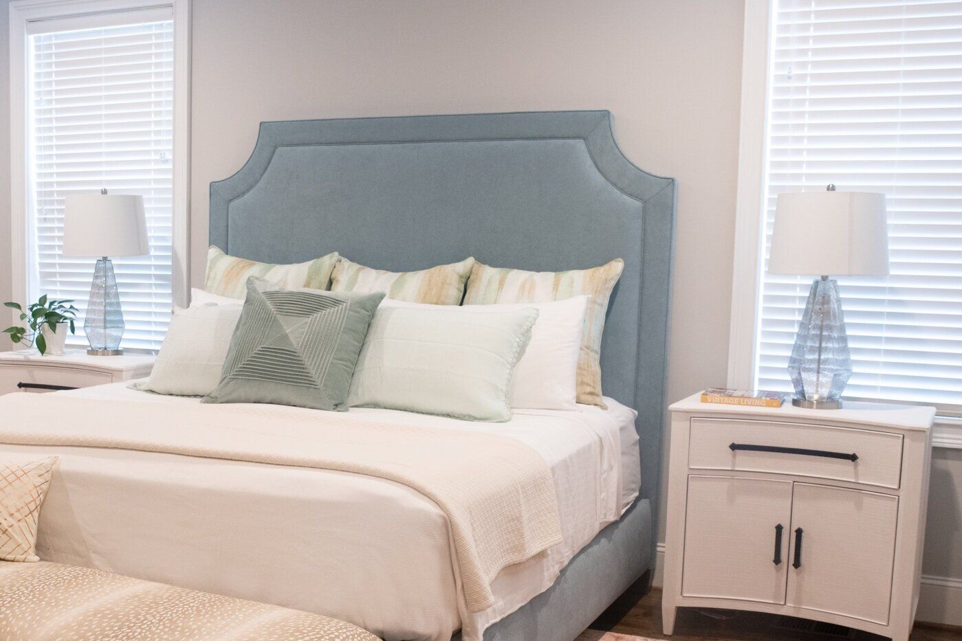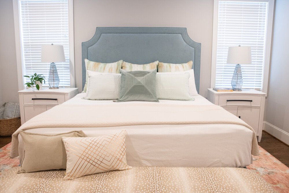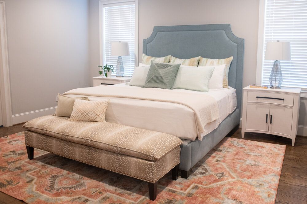 A new house, in a new city for a new job requires a place that a young couple can kick back and relax. This master bedroom will be used as a sanctuary from the stresses of work, raising children and the overall stress of day to day life. This couple can rest easy knowing their room is perfectly curated with soothing colors and patterns.